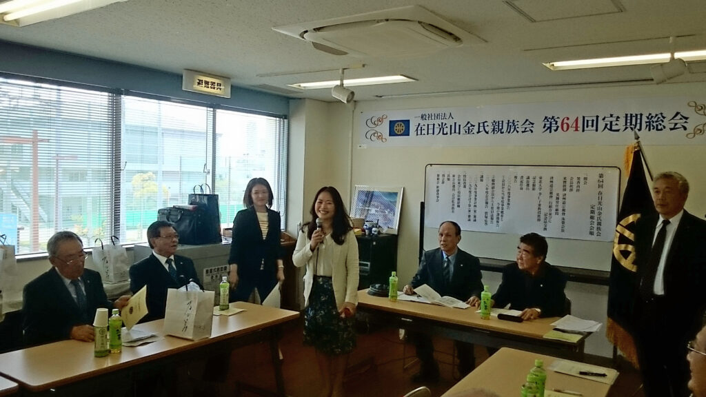 第64回定期総会は2019年4月21日生野の区民ホールで開催しました。 本国済州からご来賓として、済州島宗親会役員9名 特別来賓として東北大学大学院李仁子准教授をお迎えし、光山金氏専用霊園の1年間の活動総括と会計報告と監査を終えました。 本国からお見えになったご来賓はお昼の会食を済ませると、中央区なんばの観光に案内同行いたしました。 また、遊びにきてください。歓迎いたします。