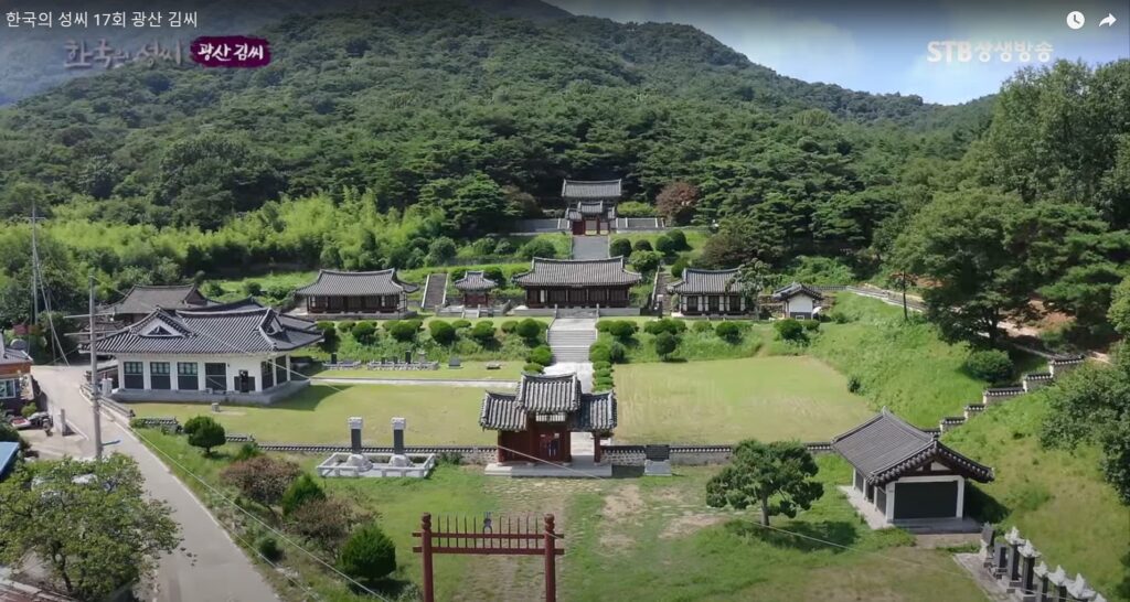 光山金氏は歴史的に新羅の王族にして、朝鮮時代の名門両班(貴族)として知られてきました。朝鮮王朝五百年の聞には名門家系が多く生まれ、それぞれ立派な特徴がありましたが、その中でも光山金氏は特有の地位を占めてきました。科挙及第者は267人で7位にとどまり、朝鮮王朝の王妃は 一人しか出ていません。にもかかわらず光山金氏が屈指の名門一族とされるのは丈臣の最高位である、大提学(朝鮮時代の最高官職)の輩出者が7人と最も多かったことによります。その頂点を極めた人物が礼学の歴史的大家で、あった金長生 (27世)とその子、集(28世)で、あったことは韓国内では広く知られています。