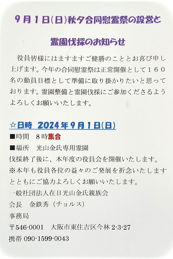 光山金氏霊園 秋夕慰霊祭開催します!2024.09.15