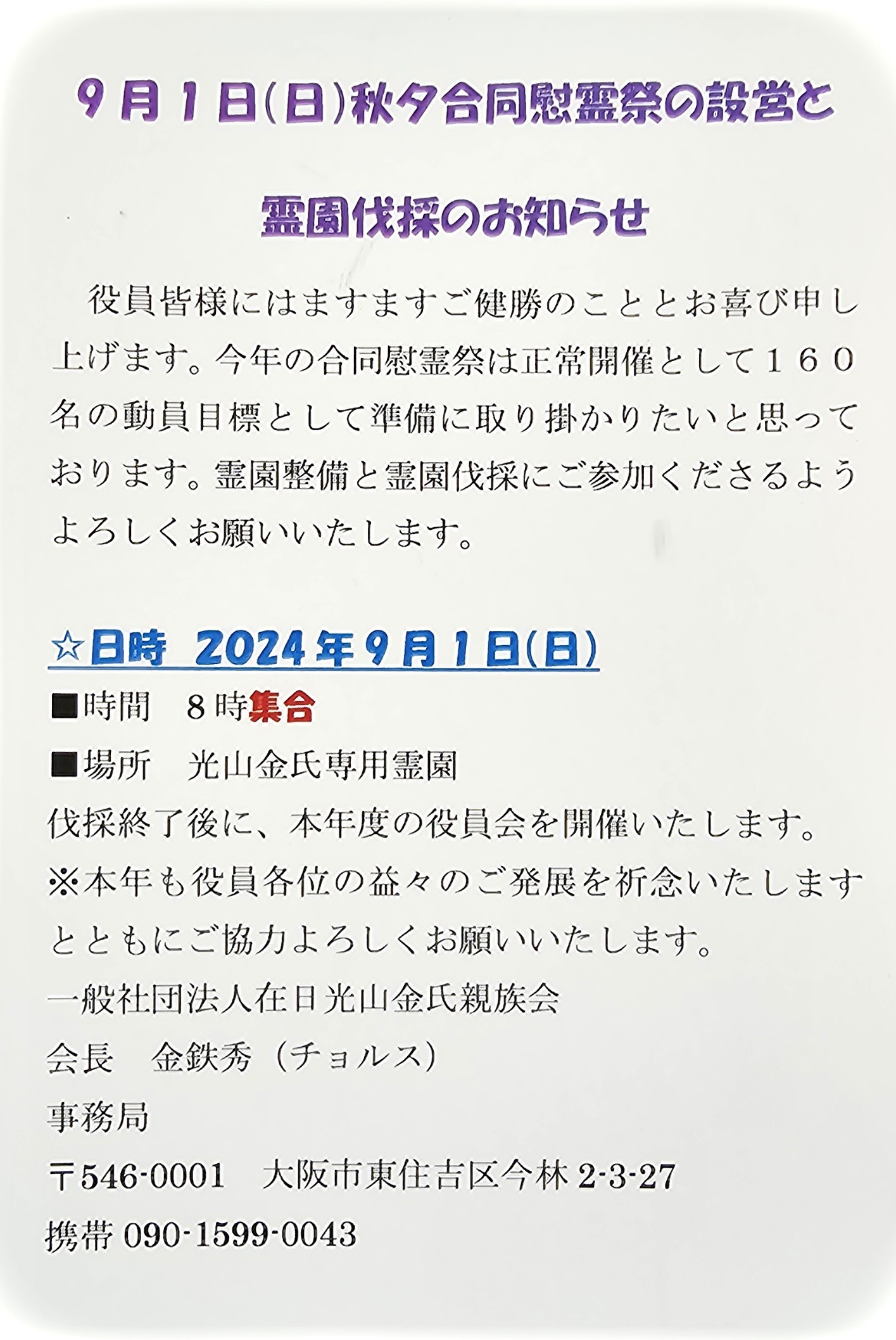 在日光山金氏親族会 第70回 定期総会のお知らせ 2025.04.08