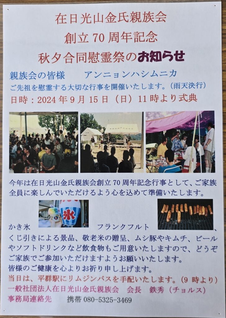 在日光山金氏親族会 第70回 定期総会のお知らせ 2025.04.08