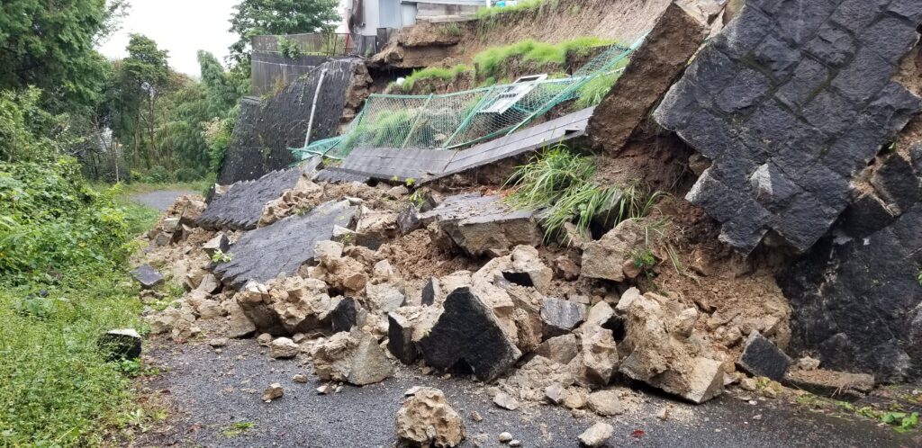 現場ではこれ以上地盤が崩壊しないよう応急処置は施し、今後については二次被害が生じることのないよう適切な復旧工事を行う準備に取り掛かっております。 擁壁の完全復旧には、行政と土木の専門業者に相談いたしましたところ、総額で900万円程度の費用を要するものとの判断が示されました。本親族会では緊急の役員会を招集し対応を協議した結果、親族会の現状の財政では支出が難しく、親族会の皆様に募金への協力を呼び掛けることにいたしました。