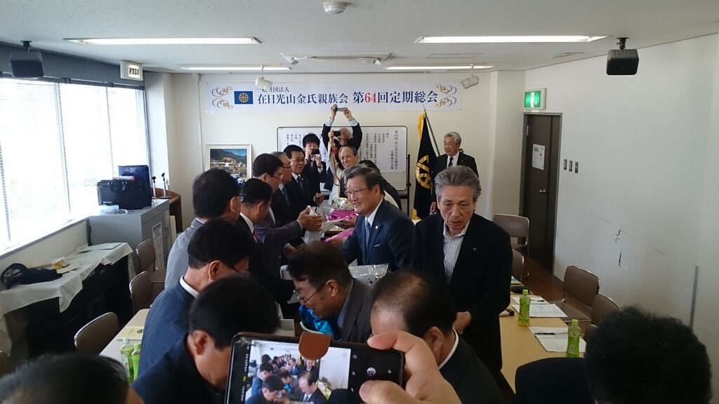 第64回定期総会は2019年4月21日生野の区民ホールで開催しました。 本国済州からご来賓として、済州島宗親会役員9名 特別来賓として東北大学大学院李仁子准教授をお迎えし、光山金氏専用霊園の1年間の活動総括と会計報告と監査を終えました。 本国からお見えになったご来賓はお昼の会食を済ませると、中央区なんばの観光に案内同行いたしました。 また、遊びにきてください。歓迎いたします。