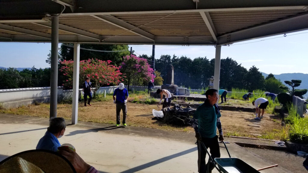 光山金氏霊園の秋夕慰霊祭を前に2023年9月10日(日)草刈とテントの設営をおこないました。