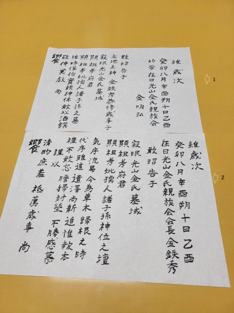 大祝(テチュク)は、とても大事であり立派な役割です。担当は毎年、ミョンホン顧問が読み上げています。
