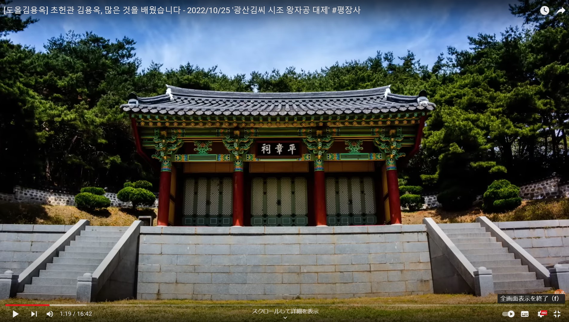 この平章洞には現在まさに光山金氏の本拠地と呼ぶにふさわしく、広大な敷地に始祖公の霊を祀る祠堂や碑、ならびに歴史館や休憩所など多様な施設が擁されています。そして、この平章洞の運営管理を担う本部にあたるのが大宗中であり、毎年秋には始祖公の大祭を催します。大祭には年間最大の行事として全国各地から多くの一族がパスを連ねて参加し、祭服を纏った祭官たちが伝統形式に則って祭祀を厳かにに司る姿を見守ります。